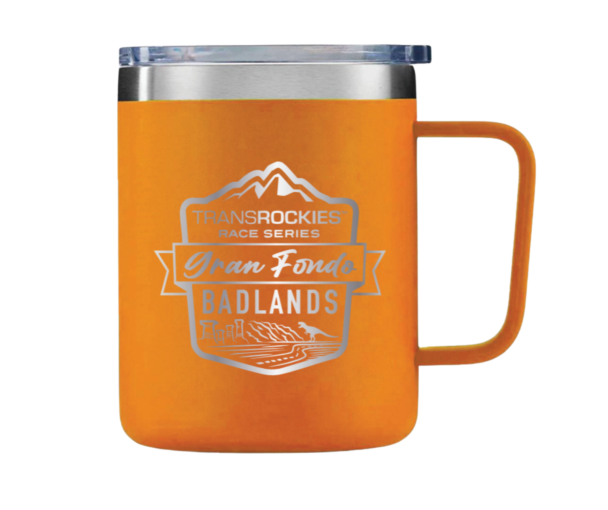 ORDER DEADLINE IS MIDNIGHT (mountain time) ON FRIDAY MAY1, 2026! Product available for pick up at the event. Take the spirit of the Badlands with you wherever you go with our 355 ml (12 oz) Gran Fondo Badlands Travel Mug. Built for performance and style, this double-wall stainless steel mug is vacuum-sealed to keep your drinks hot or cold for hours. The powder-coated finish offers a durable, sleek look, while the spill-resistant lid keeps every adventure mess-free. Featuring the official Gran Fondo Badlands logo, it’s the perfect companion for your pre-ride coffee, mid-ride hydration, or post-ride refreshment. BPA-free and adventure-ready—just like you.